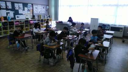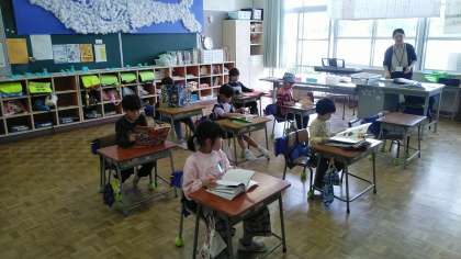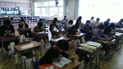 今日の読書タイムは、1年生教室と2年生教室と6年生教室の様子です。
