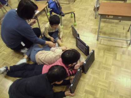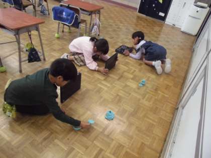 1年生の5時間目は、クロームブックを使って、コマ撮り動画を撮影しました。図工の時間につくった粘土作品を少しずつ動かして写真を撮り、再生するとパラパラ漫画のようになります。子供たちは物語風になるように撮影したり、互いの動画を見合ったりして楽しみました。