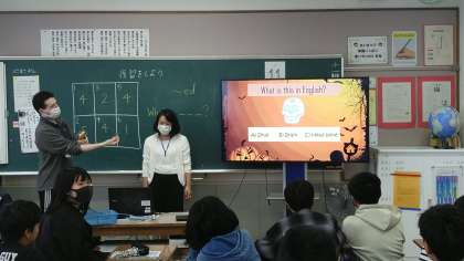 6年生の1時間目は、外国語科の学習の時間でした。ハロウィンのときのクイズの復習をしていました。