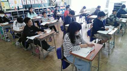 5年生の3時間目は、算数科の学習でした。帯分数の計算方法について考えていました。仮分数に直して計算すると発言していました。