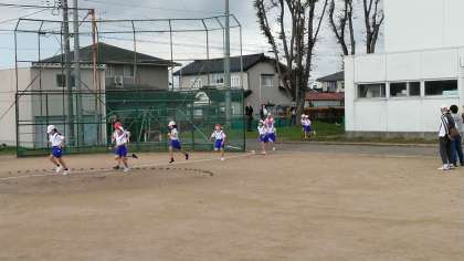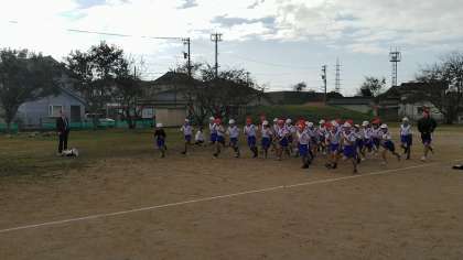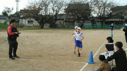 3・4年生がスタートしました。スタート→トラック1/4周→校舎の周り→トラック半周→校舎の周り→トラック1/4周→ゴールの約800メートルです。