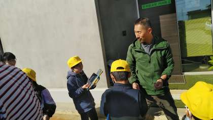 お土産(鉄でできた蝶)をもらって学校に戻りました。内田てっ工さん、いろいろとありがとうございました。