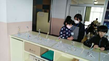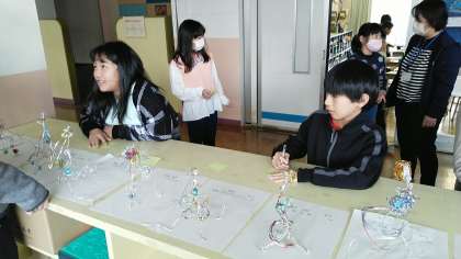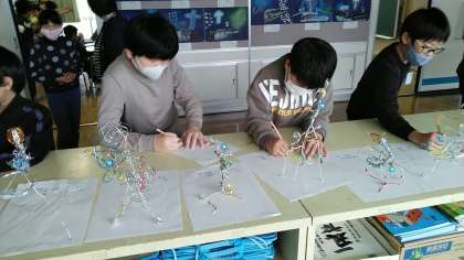 5年生の6時間目は、図画工作科の学習でした。友達の作品を見た感想を付箋に書いて貼っていました。