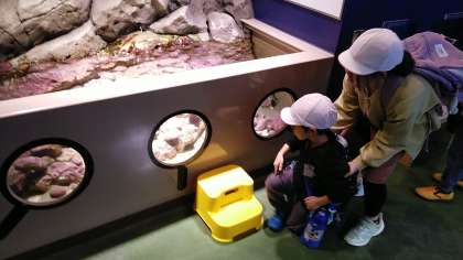 水族館の中に入りました。身近な魚たちがいっぱいいました。
