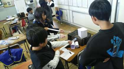 11月15日(水) 4年生 今日の授業風景(空気の力を使ったおもちゃづくり)