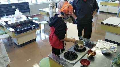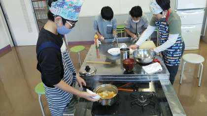 5年生の1・2時間目は、家庭科の調理実習でした。今日は、みそ汁をつくっていました。おいしそうなみそ汁ばかりでした。