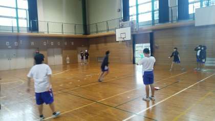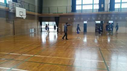 6年生の1時間目は、体育科の学習でした。バスケットボールのパスの練習をしていました。スクエアパスというパスの練習に取り組んでいました。