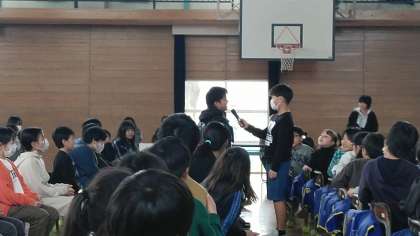 健康委員会の劇を見たあと、子供たちが感想を述べました。