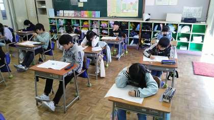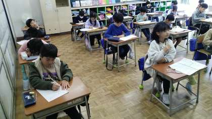3年生が校外学習から帰ってきました。6時間目に、早速、振り返りをしおりに書いていました。