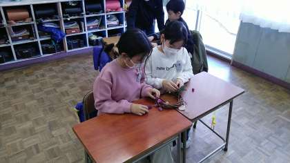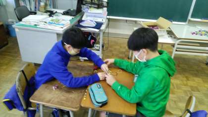 5年生は、6時間目にリースをつくっていました。グループにわかれて担当するリースをつくっていました。