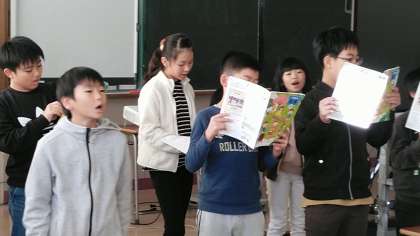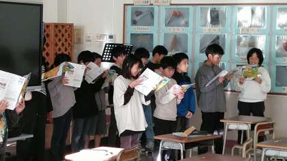 4年生は、6時間目に音楽室で歌を歌っていました。「秋の夕日に…」二部合唱のもみじです。一休庵訪問に向けて練習しているみたいです。