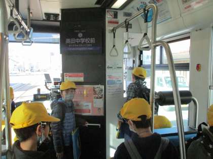 富山市役所の展望塔から、富山市の様子がよく見えました。富山駅ではストリートピアノを弾いたり、交通の様子を見学したりしました。ライトレールに乗って、東岩瀬駅へ向かいます。