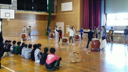 今日は、二上先生を招いての太鼓指導がありました。今回も、5年生から4年生への引き継ぎの時間でした。