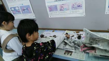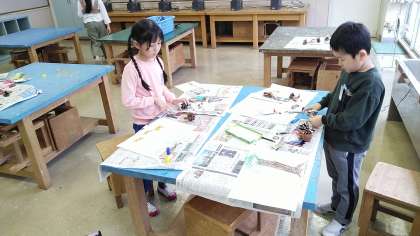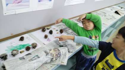 11月24日(金) 2年生 今日の授業風景(秋見付けで見付けたものを使って…)