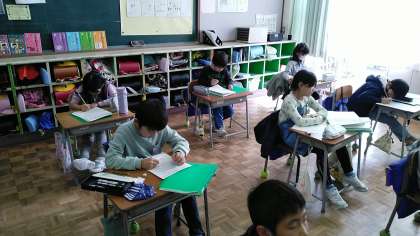 3年生の2時間目は、総合的な学習の時間でした。校外学習で見付けてきた四方のすてきを2年生に伝えるためのメモを書いていました。