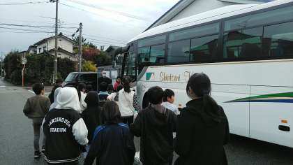 4年生が校外学習に出発します。富山市科学博物館に向かいます。