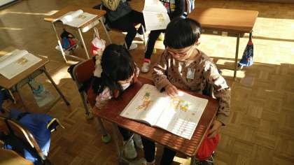1年生の1時間目は、道徳科の学習でした。お話の中に出てくる動物の気持ちについて友だちと話し合っていました。