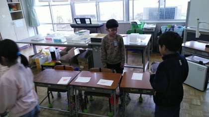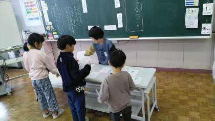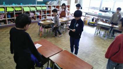 1年生の4時間目は、国語科の学習でした。ちょうどお店やさんごっこをしていました。いろいろな品物を楽しく売っていました。