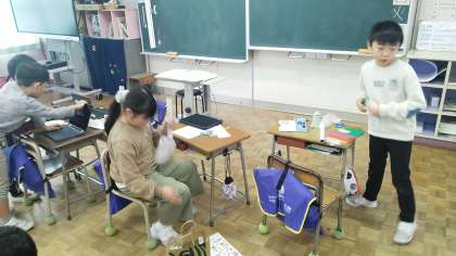 2年生の2時間目は、生活科の学習でした。動くおもちゃづくりに取り組んでいました。