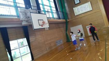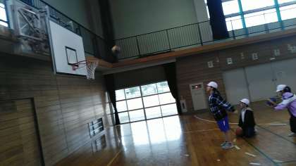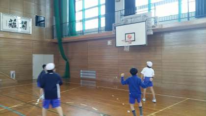 5年生の5時間目は、体育科の学習でした。体育館でバスケットボールのシュートの練習をしていました。