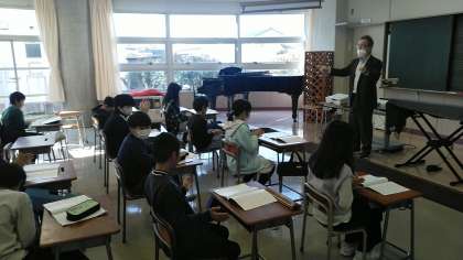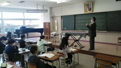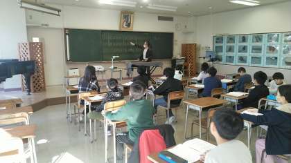 5年生の4時間目は、音楽科の学習でした。リズムに合わせて手を叩く活動では、なかなかタイミングの合わない人もいるみたいでした。