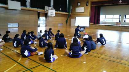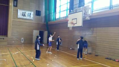 6年生の2時間目は、体育科の学習でした。今日もバスケットボールのシュート練習をしていました。クロームブックや大きなモニターも使って、練習を進めていました。