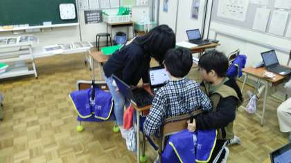 3年生の2時間目は、総合的な学習の時間でした。町探検で見付けたすてきを2年生に伝えるための準備をクロームブックでしていました。