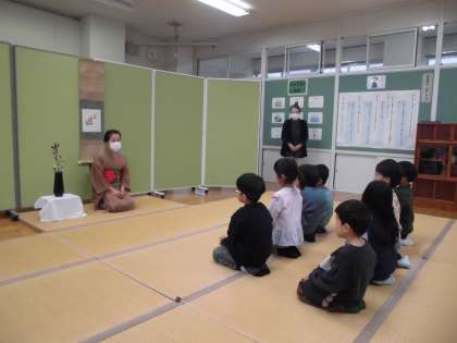 1年生は、各学年1回行われている茶道教室で作法を学びました。