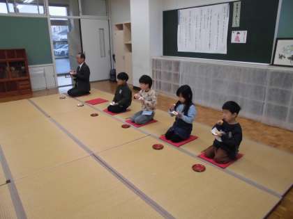 とても落ち着いてお菓子やお茶を運び、食べたり飲んだりしていました。