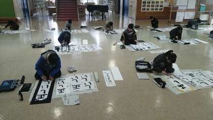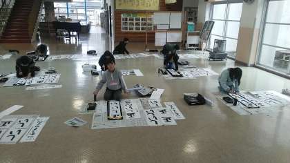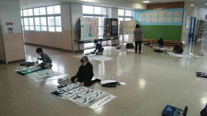 3年生の1時間目は、書写の学習でした。コモンスペースで書き初めの練習をしていました。一文字一文字丁寧に書いていました。