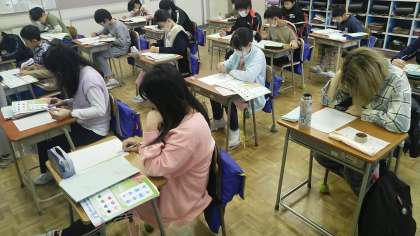 5年生の2時間目は、外国語科の学習でした。たくさんのアルファベットの中から色のつづりを見付けていました。