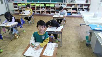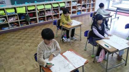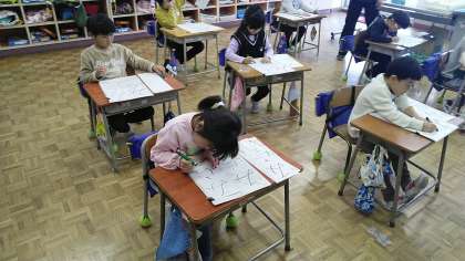 1年生の5時間目は、書写の学習でした。書き初めの練習をしていました。