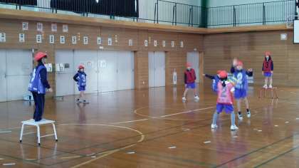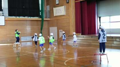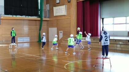 3年生の5時間目は、体育科の学習でした。体育館でポートボールの練習を団ごとにしていました。