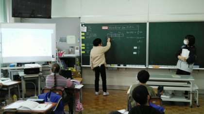 3年生の5時間目は、算数科の学習でした。2分の3という数について考えていました。