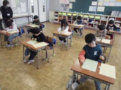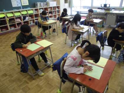 1年生の1時間目は、国語科の学習でした。「てがみで しらせよう」では、先週、手紙を送る相手を決めて、下書きをしました。今日は、丁寧な字で心を込めて手紙の清書をしました。子供たちは真剣に取り組んでいました。