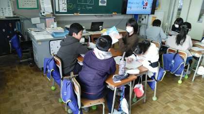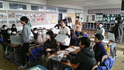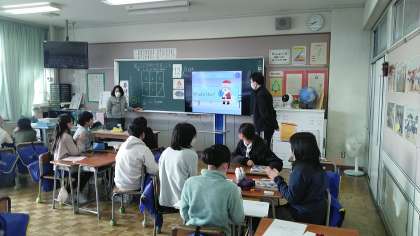 6年生の1時間目は、外国語科の学習でした。画像を見ながら何なのかを英語で答えていました。