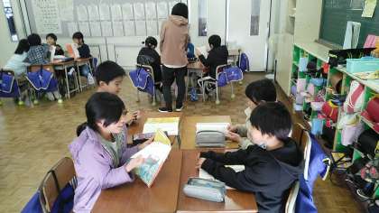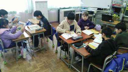 3年生の1時間目は、国語科の学習でした。グループごとに「3年とうげ」のお話を声を出して読んでいました。
