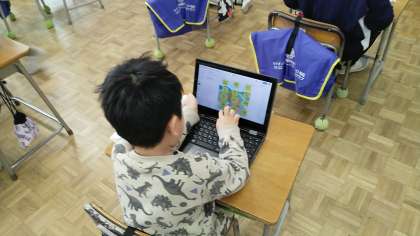 2年生の2時間目は、国語科の学習でした。お話の作者になろうという学習で、クロームブックを使ってお話の設定等を考えていました。