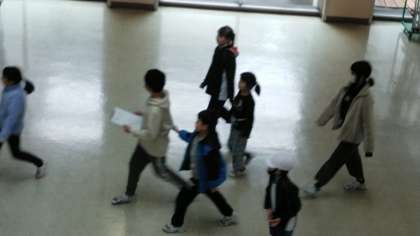 さわやかタイムに、読書ラリーを行いました。縦割りグループごとに、校内を回って問題を見付けて解いていました。