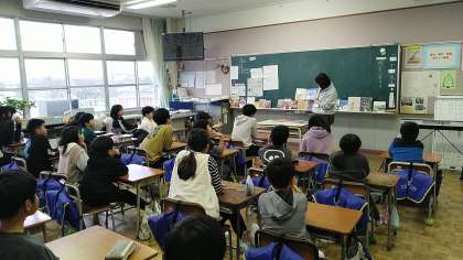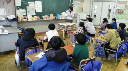 4年生の5時間目は、国語科の学習でした。ちょうど担任の先生が読み聞かせをしていました。