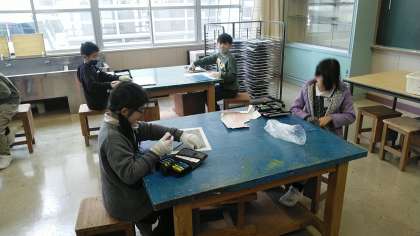 1月11日(木) 3年生 今日の授業風景(ゴム版画)
