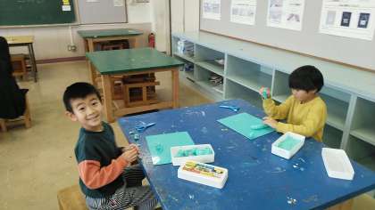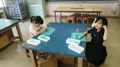 1年生の3時間目は、図画工作科の学習でした。油粘土で「いっしょにさんぽ」しているものをつくっていました。