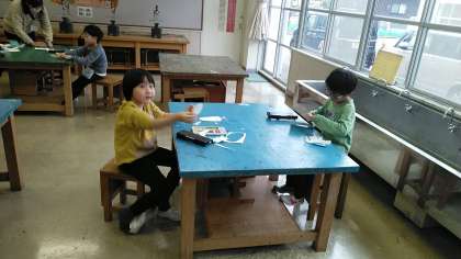 1月15日(月) 1年生 今日の授業風景(切った紙の形から…)