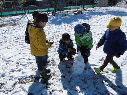 1・2年生の3・4時間目は、雪遊びをしました。そり滑りをしたり、かまくらや雪だるまをつくったりしました。雪は少し溶けていましたが、約束をしっかりと守りながら安全に楽しく遊ぶことができました。