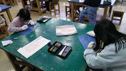 1月19日(金) 3年生 今日の授業風景(ゴム版画)