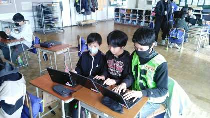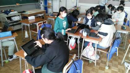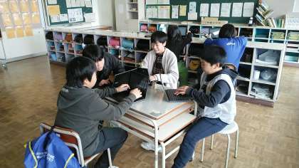 6年生の4時間目は、総合的な学習の時間でした。20年後の四方についてプレゼン資料をつくっていました。学習参観で発表するそうです。