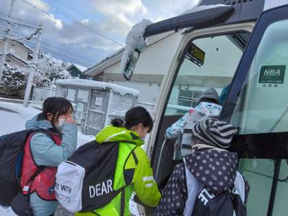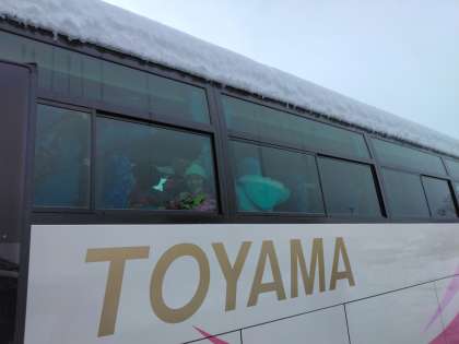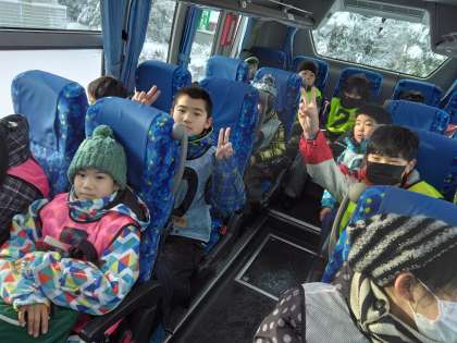 これからバスに乗って牛岳温泉スキー場に向かいます。