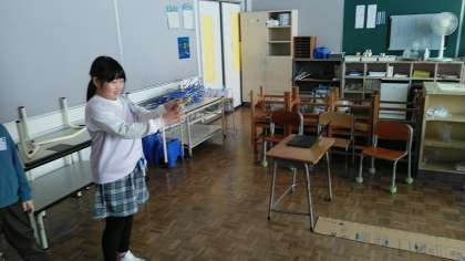 2年生の1時間目は、生活科の学習でした。今度、1年生を招待する準備をしていました。説明動画を撮ったり、袋ロケットやストローピストルの準備をしたりしていました。