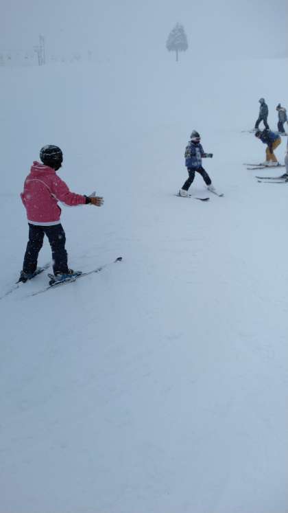 上半身のひねりを利用してプルーク姿勢でのターンです。