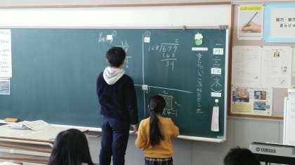 4年生の4時間目は、算数科の学習でした。練習問題を解いていました。解いたあと、みんなで答え合わせをしていました。
